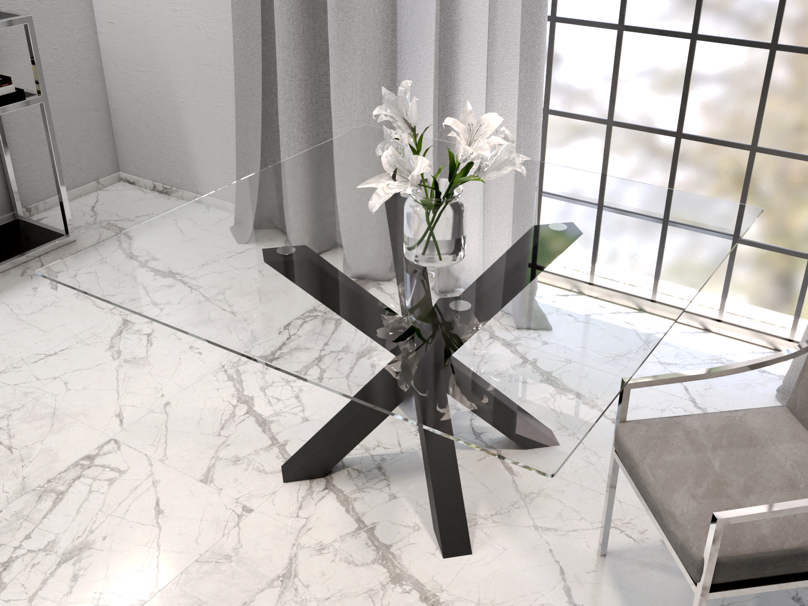 Tischgestell unter Glasplatte Spinne S