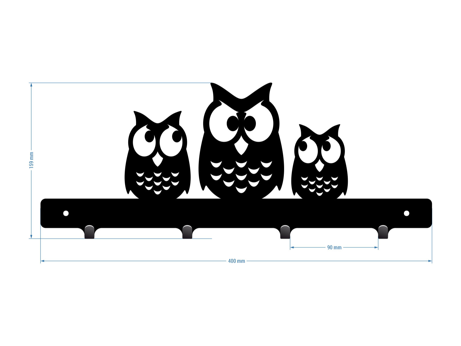 Ozdobny, krótki wieszak do przedpokoju z postaciami trzech uroczych sówek. Model ten posiada 4 haczyki na ubrania. Jego całkowita szerokość wynosi 40 centymetrów. Ciekawe wzornictwo z pewnością przyciągnie wzrok każdego!